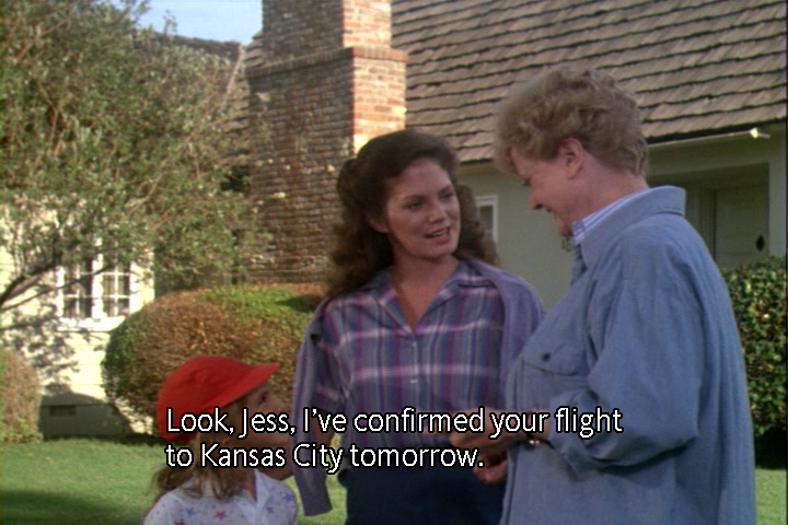 Determined to protect Miss Bascomb, J.B. calls her airline to change to a later flight to K.C. and book a return flight to Chicago that evening.