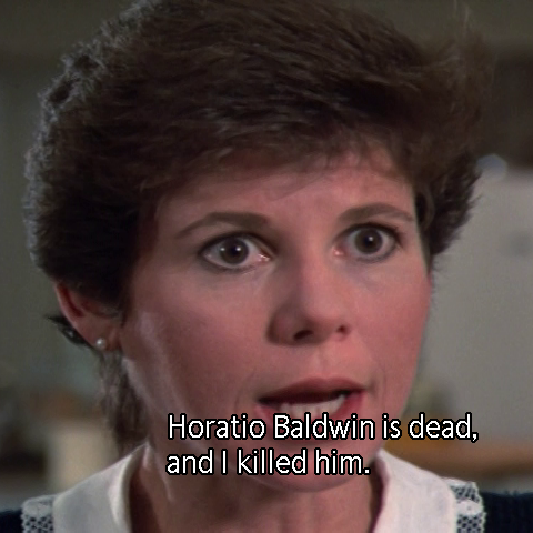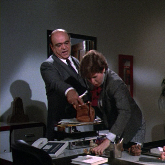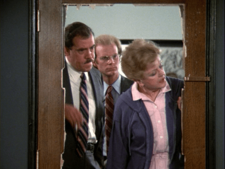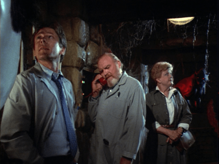 Meanwhile, Jessica and Bert search Horatio’s Office of Horrors for the blackmail files. Our lady discovers the secret hiding place, but to no avail. Detective Bert concludes that the murderer must have stolen the files. Phil Carson derides the entire theory.