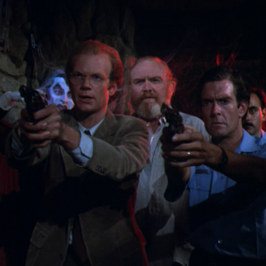 After Horatio’s little tableau of terror, Jessica reluctantly agrees to meet with him, and descends in a red elevator to his Basement of Horrors.