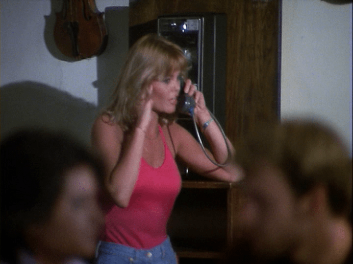 …Which is why I think these particular dresses stood out to me. While they are certainly very much on-trend for the time, they do not suit the characters wearing them. No other notes for Leslie though, she looks great in her white dress. (Patti D’Arbanville would probably look fantastic in anything.) Unfortunately, the pale pink, billowy dress that they put on Angela is not flattering. The scarf feels out of place, and initially, I felt like perhaps it was added because Angela also felt this dress wasn’t the right thing.