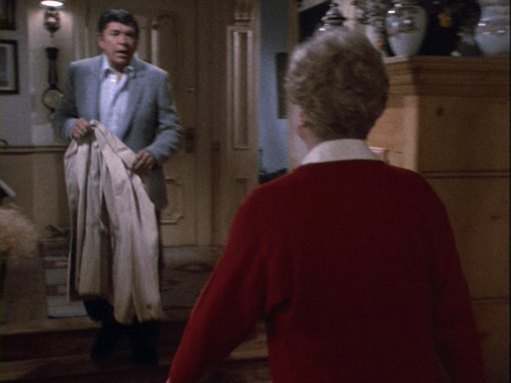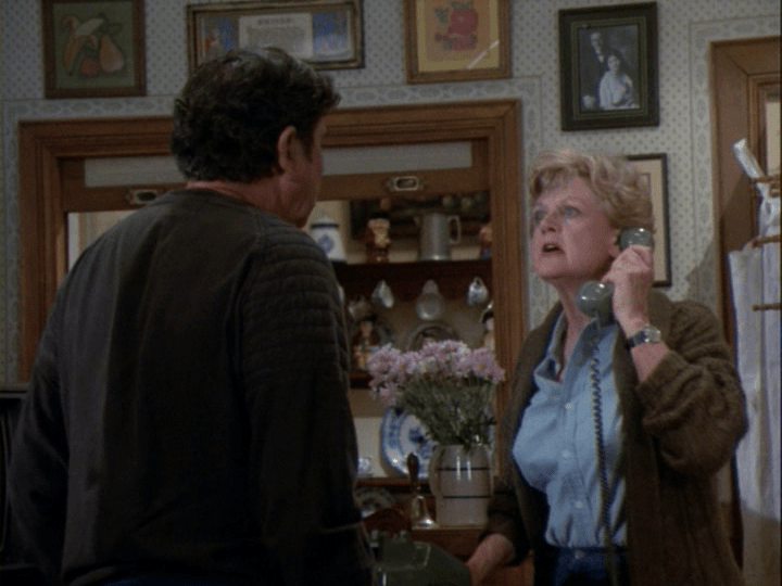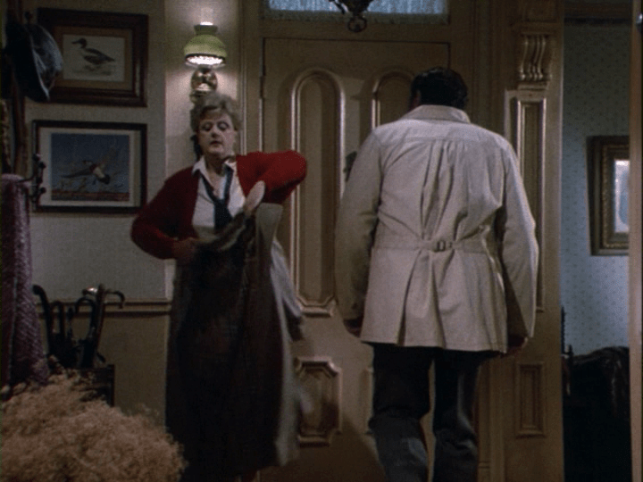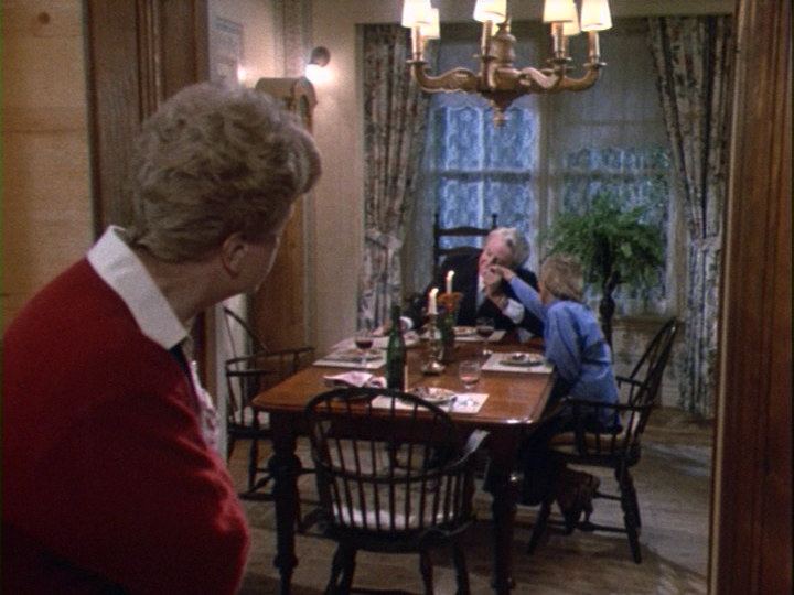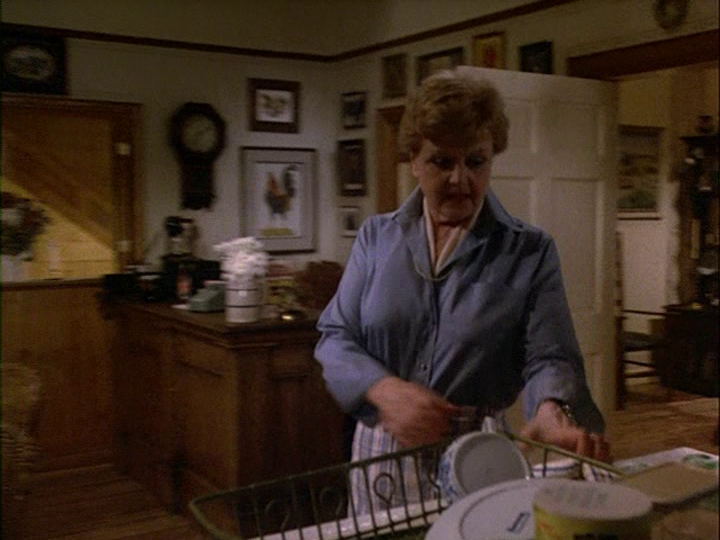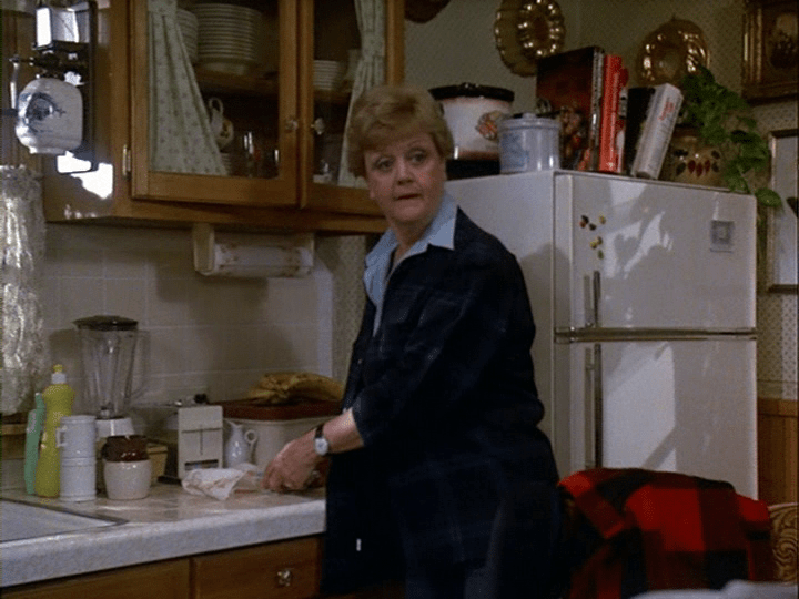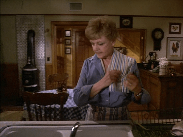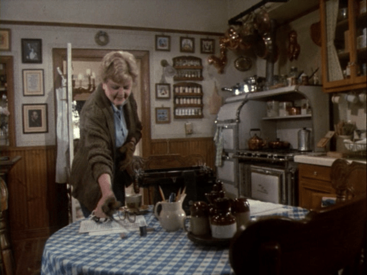 As well as “Deadly Lady,” which is set in Cabot Cove, the opening scenes of “Hooray for Homicide” feature Jessica’s Cabot Cove kitchen in detail. The following stills give us roughly a full rotation of the room, as well as enough information for a basic floorplan.