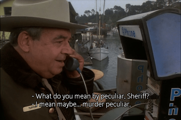 Police Captain Davis is very solicitous of Jessica’s crime solving abilities because she’s such a swell mystery novelist.