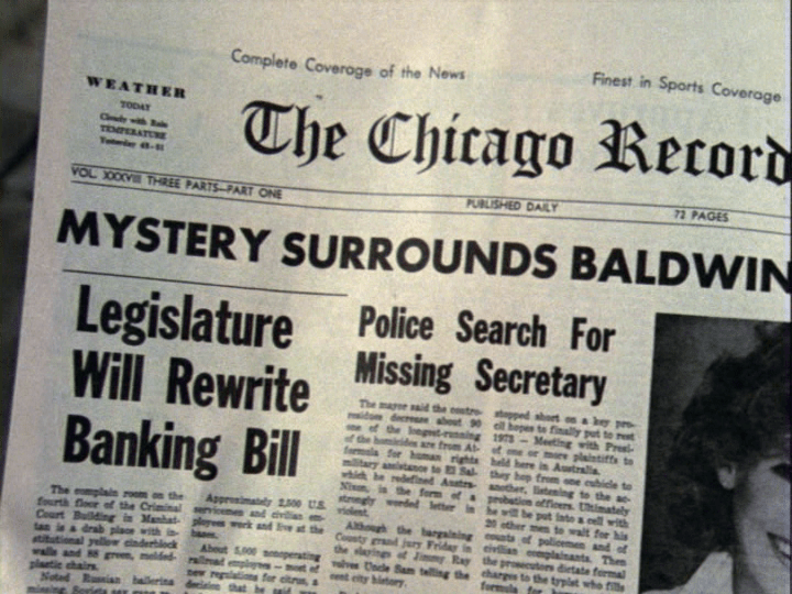 This episode is low, low key set somewhere in Chicagoland. There are no glamorous on-location scenes with sightlines to Chicago landmarks. The name “Chicago” is never even spoken. The only direct reference to the Windy City is this fake newspaper.