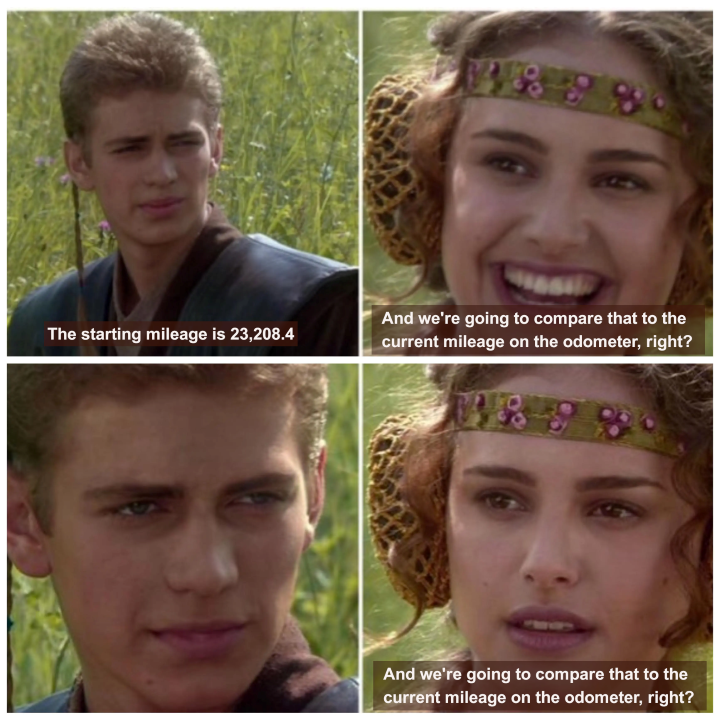 Yeah, maybe you did, Jessica, but we didn’t. Why force fuzzy math about gasoline on us, when you could just show us the odometer and do some nice, simple math about those 100-mile trips back and forth to Portland?